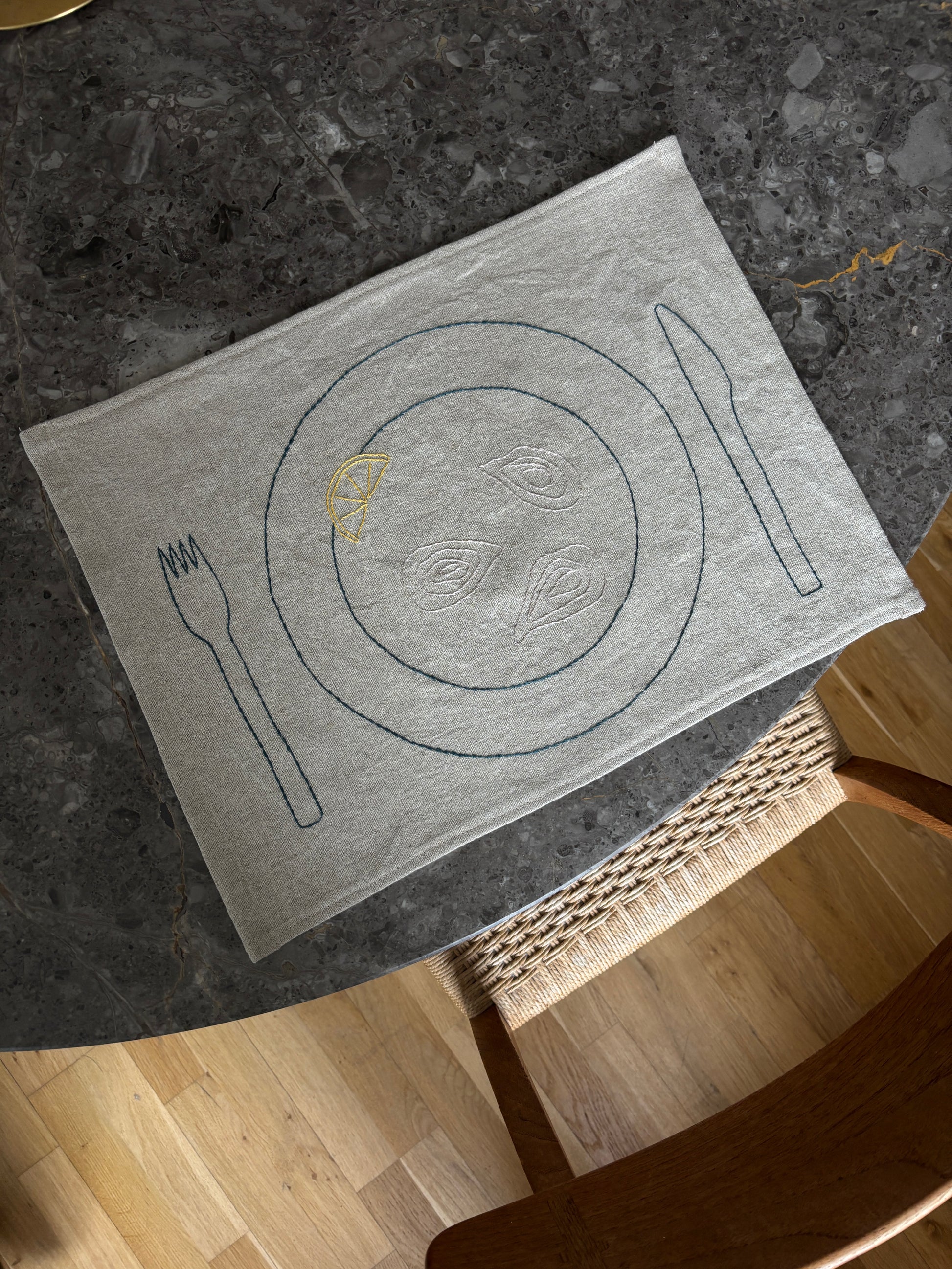 Frihåndsbroderet dækkeserviet med det motiv man kunne ønske sig.