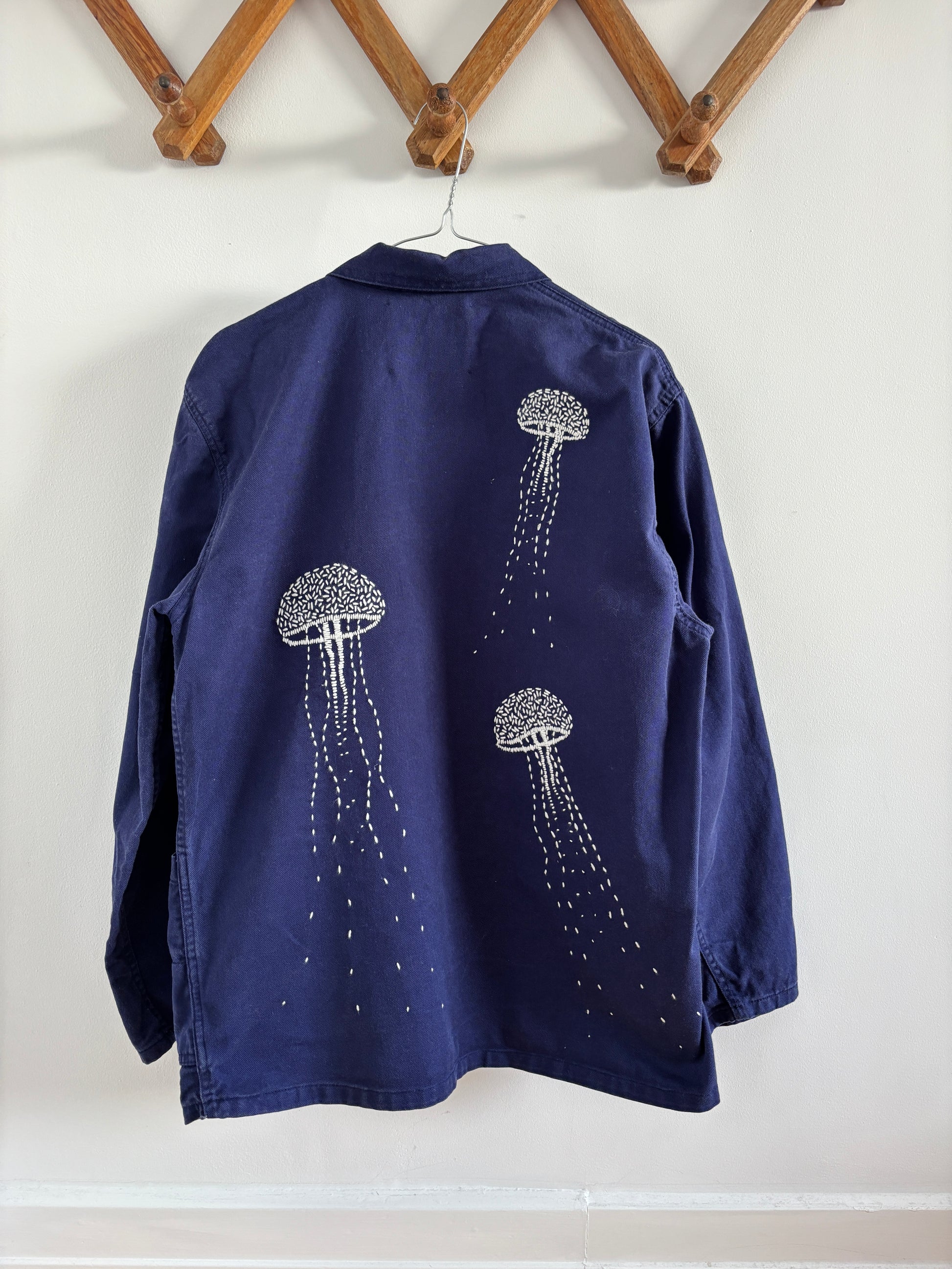 Brugt arbejdsjakke med frihåndsbroderede gopler