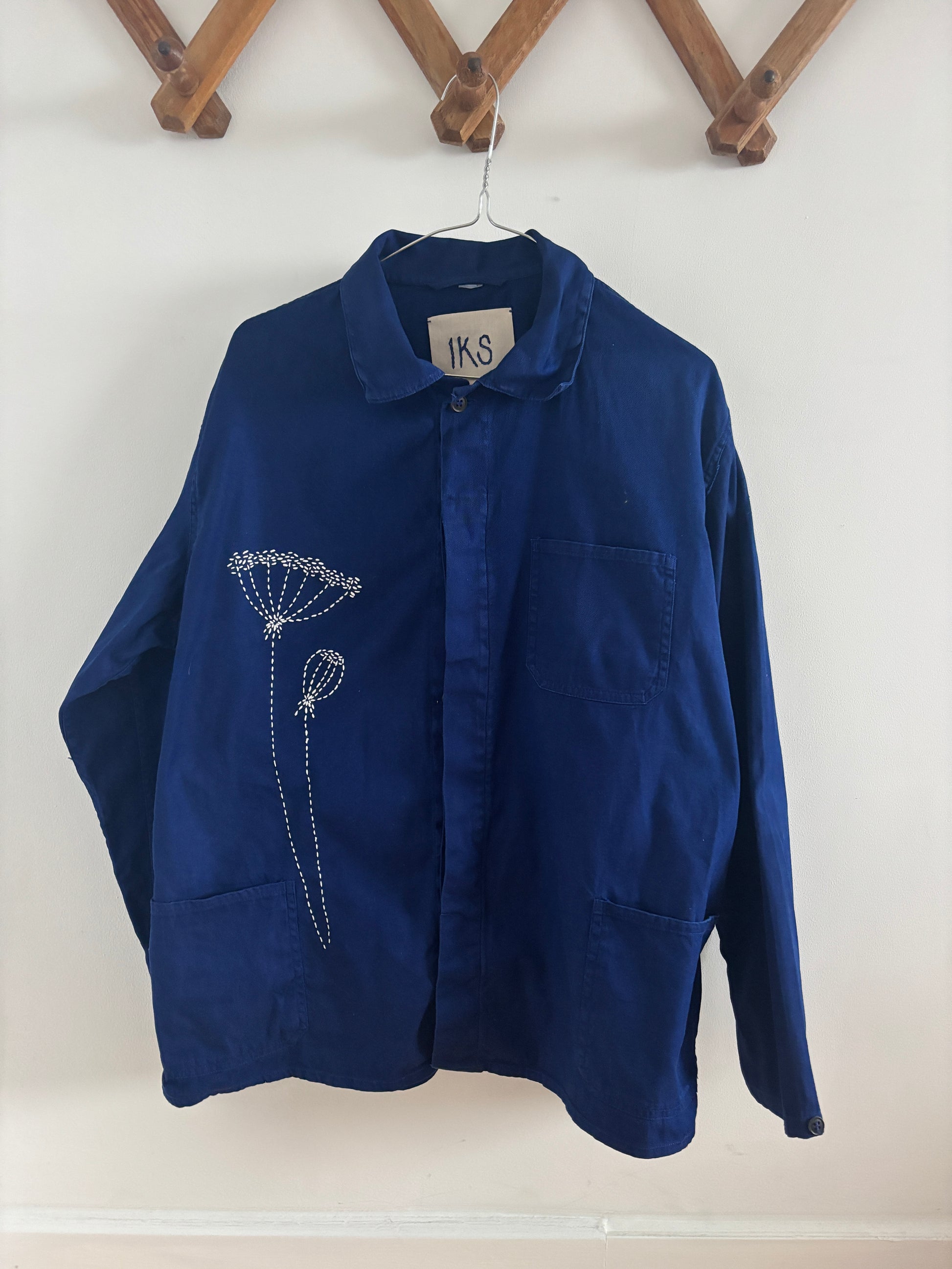Brugt arbejdsjakke med frihåndsbroderet vild gulerod
