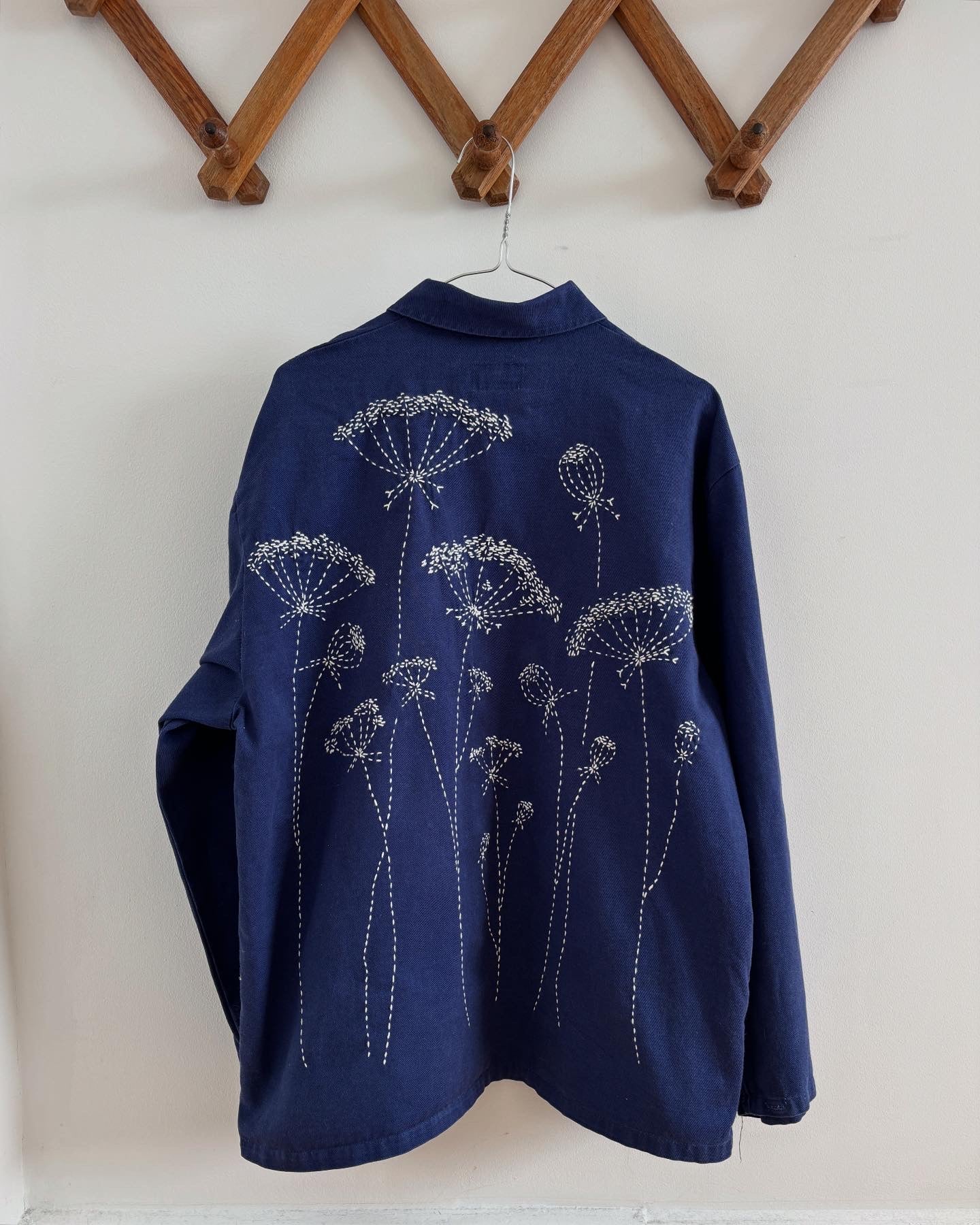 Brugt arbejdsjakke med Frihåndsbroderet vild gulerod