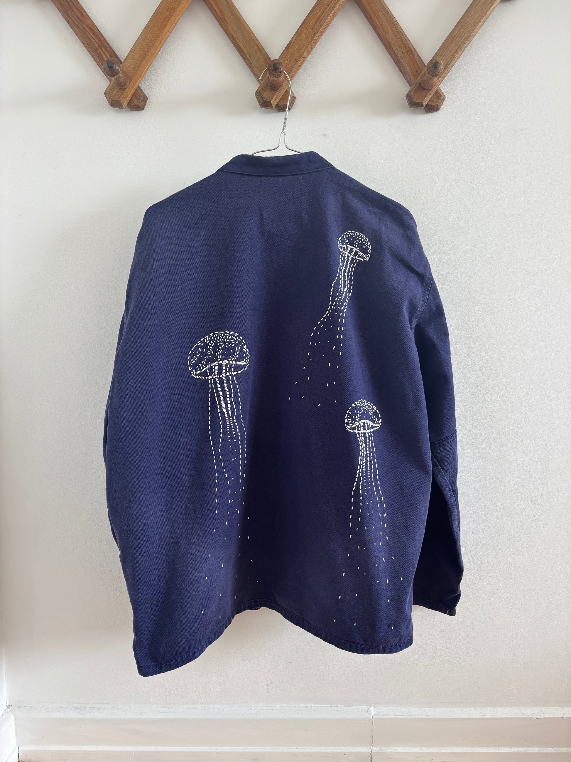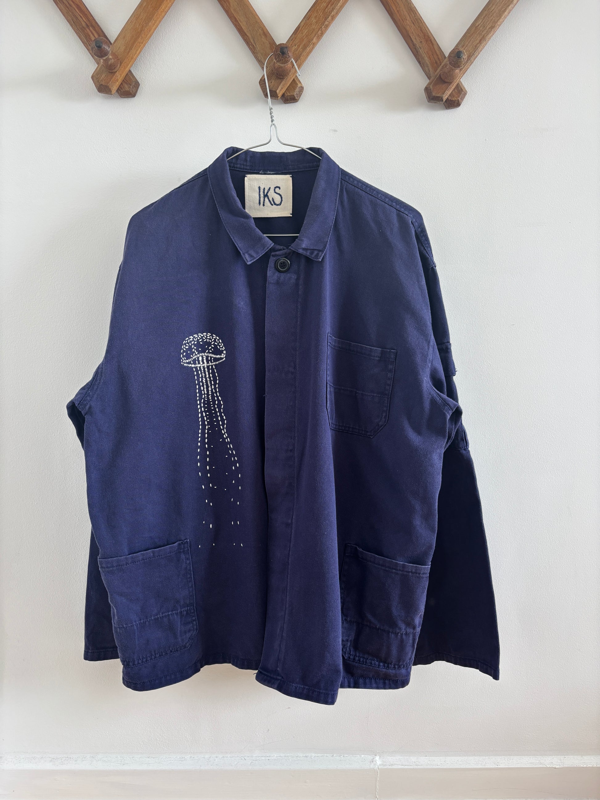 Brugt arbejdsjakke med frihåndsbroderede gopler