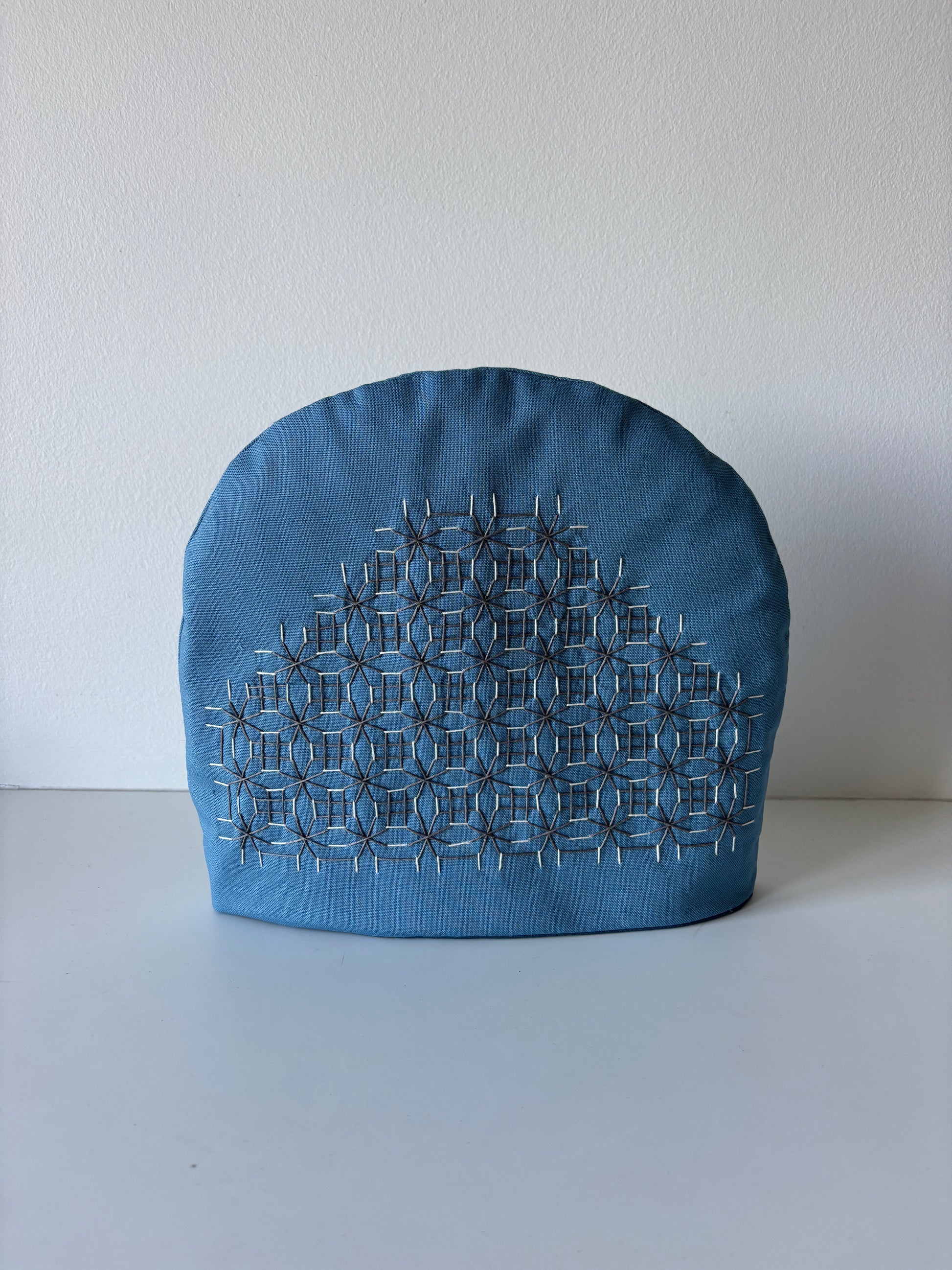 Tehætten er håndbroderet med den japanske sashikoteknik af bomuldsgarn på 100% bomuldsstof.